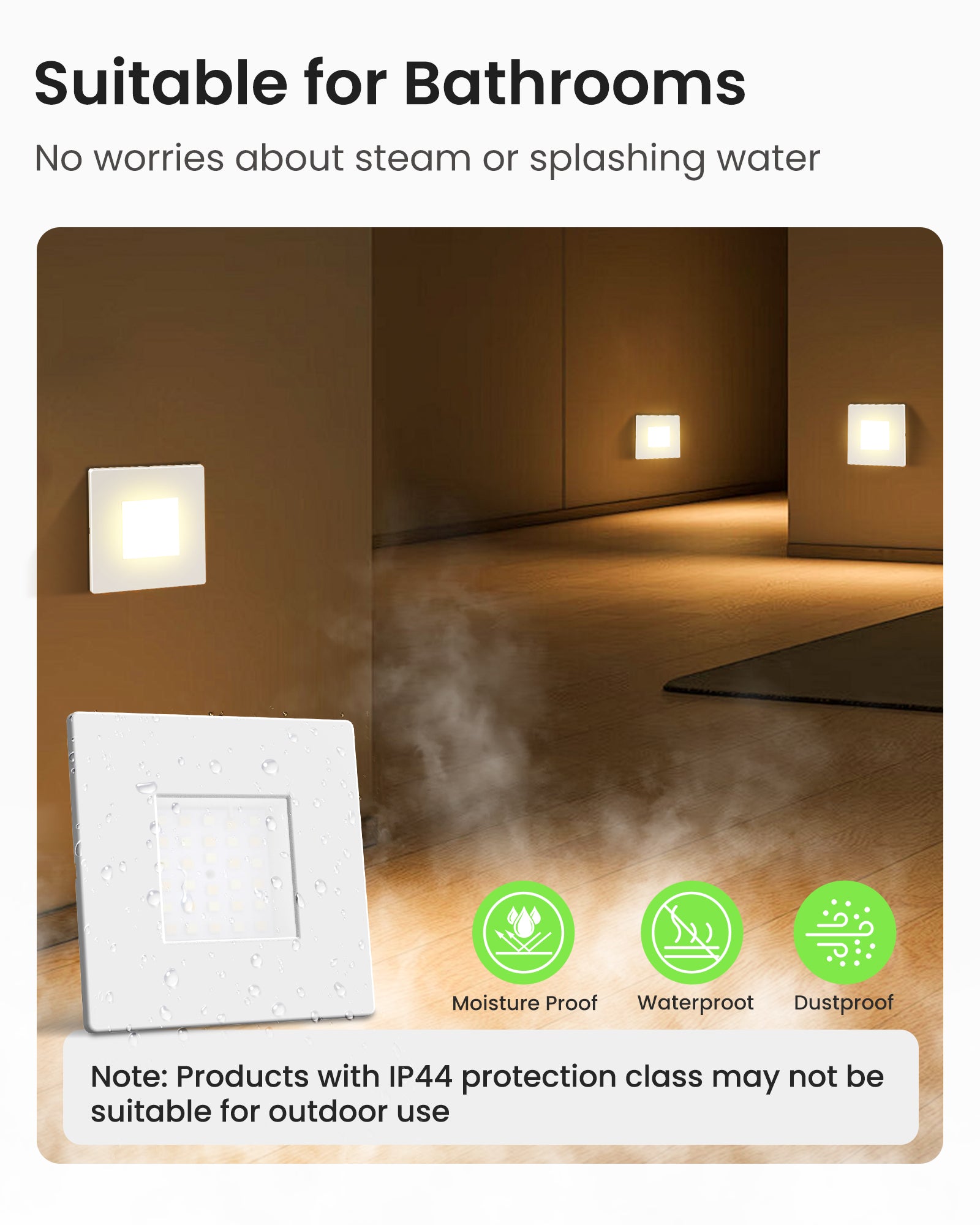 ✅ IP44 waterproof: Our step lighting can withstand all weather conditions, whether rain, frost, or storms. This makes the stair lights ideal for outdoor use.