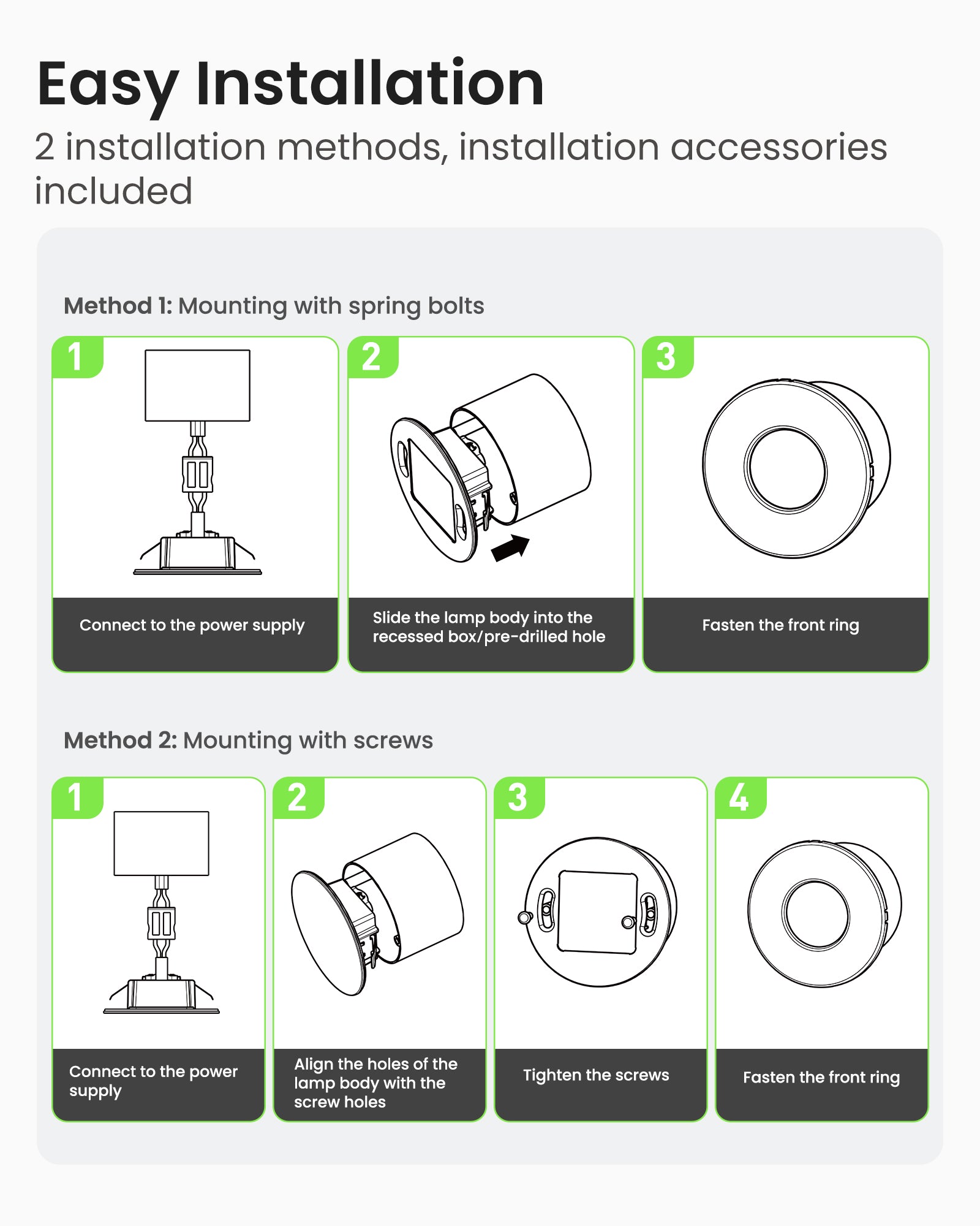 ✅ Easy to install: The stair lighting can be quickly and easily installed in all standard installation boxes (flush-mounted boxes/cavity wall boxes). Screws are included. No transformer required; connect directly to 230 V.