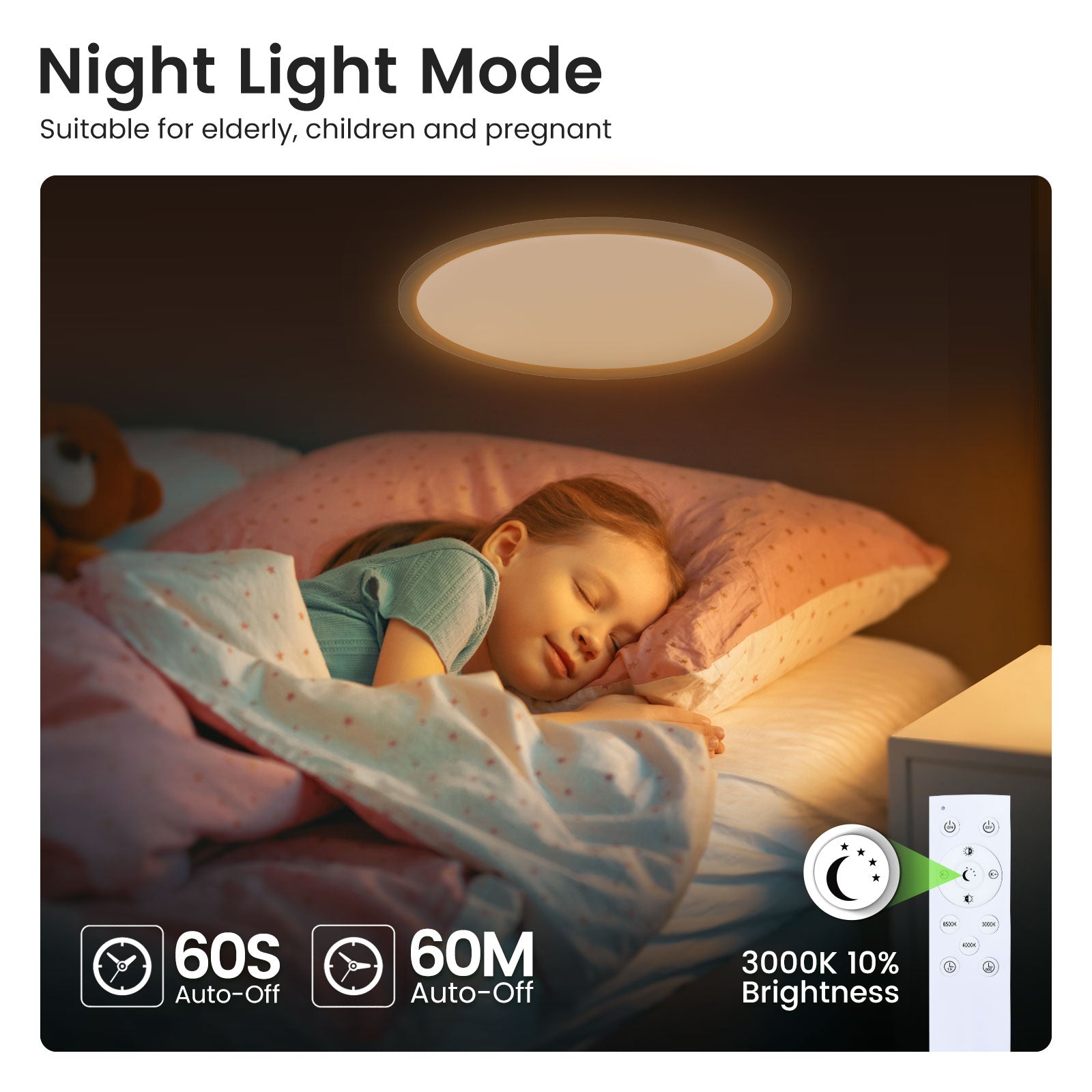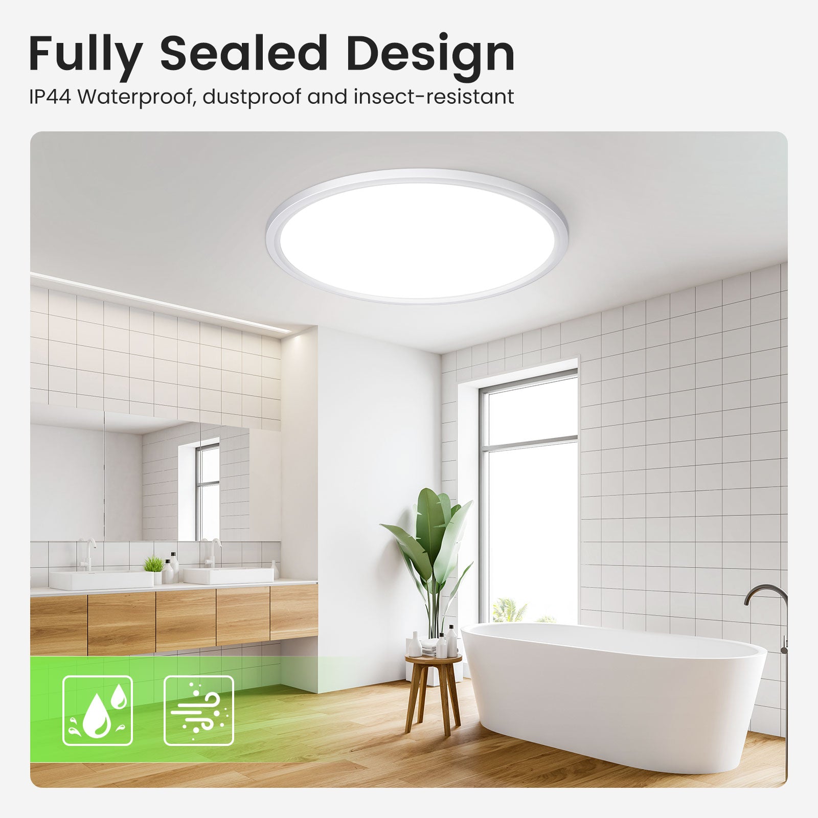 ✅【IP44 Waterproof】The sealed design provides IP44 water and dust resistance for reliable daily use. A durable LED panel and insulated housing help reduce electrical risks, making it ideal for hallways, bathrooms and children’s rooms.