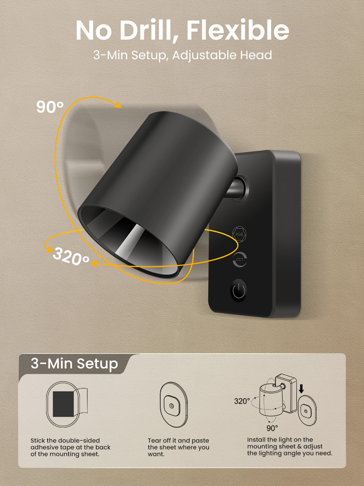 ✅【320°Rotations & Easy to Install】With a rotation range of 320° horizontally and 90° vertically, our picture light can be adjusted to any angle you desire, providing bright and directional lighting where you need it most. Simple and easy to install with the included double-sided adhesive tape, or choose to permanently install with screws (screws not included).