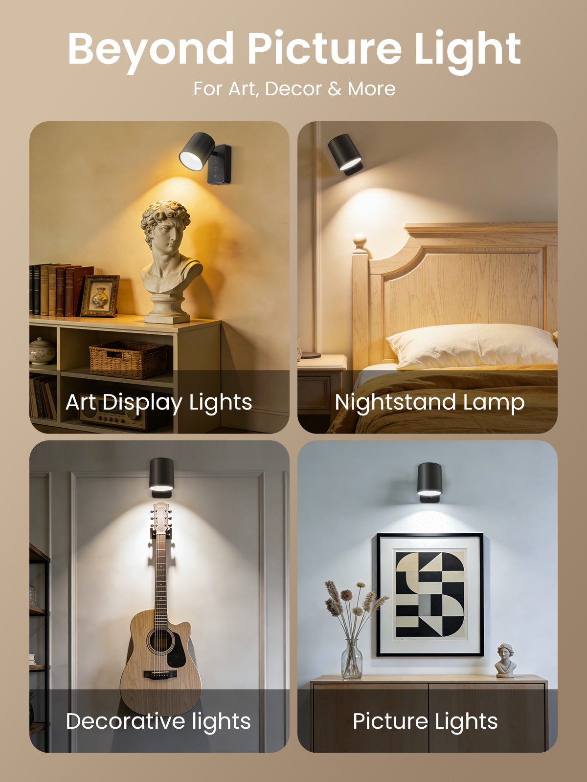 ✅【NO Battery Life Anxiety LED Wall Lamp】The battery picture light built-in an impressive 4000mAh rechargeable battery, fully charged less than 4.5hrs which usage duration surpasses 80% of comparable products on the market. Bundled with a convenient 1.0m charging cable, you can enjoy its illumination even while it's charging.